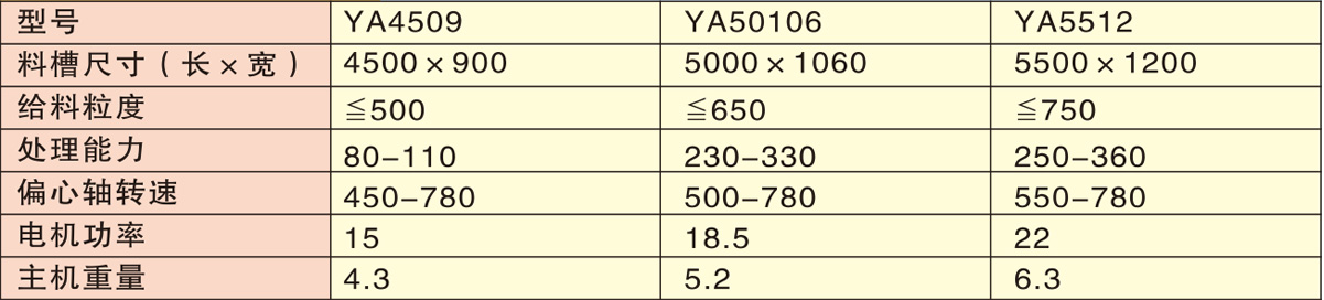 Ya系列給料機主要和是利用皮帶輪和飛輪與偏心軸轉動產生的偏心慣性迫使機器產生振動,從而實現自動給料。在皮帶輪和飛輪上裝有配重塊,用戶可通過增減配重塊來調整振幅,以滿足不同用戶的需要。其主要用于石礦場給料,也可用于冶金、化工和煤炭等工業部門。